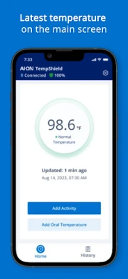 The AION Shield application does not collect, store or transmit your personal information. All your temperature readings are securely transmitted and stored according to the HIPAA rules.