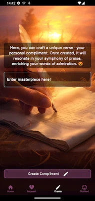 “Tender compliments” consists of a great compilation of compliments, but you can also become an author of them. With the function “add compliment” you can write your own or delete the ones you do not want to receive. This way you will end up only with the ones that bring you a smile.a